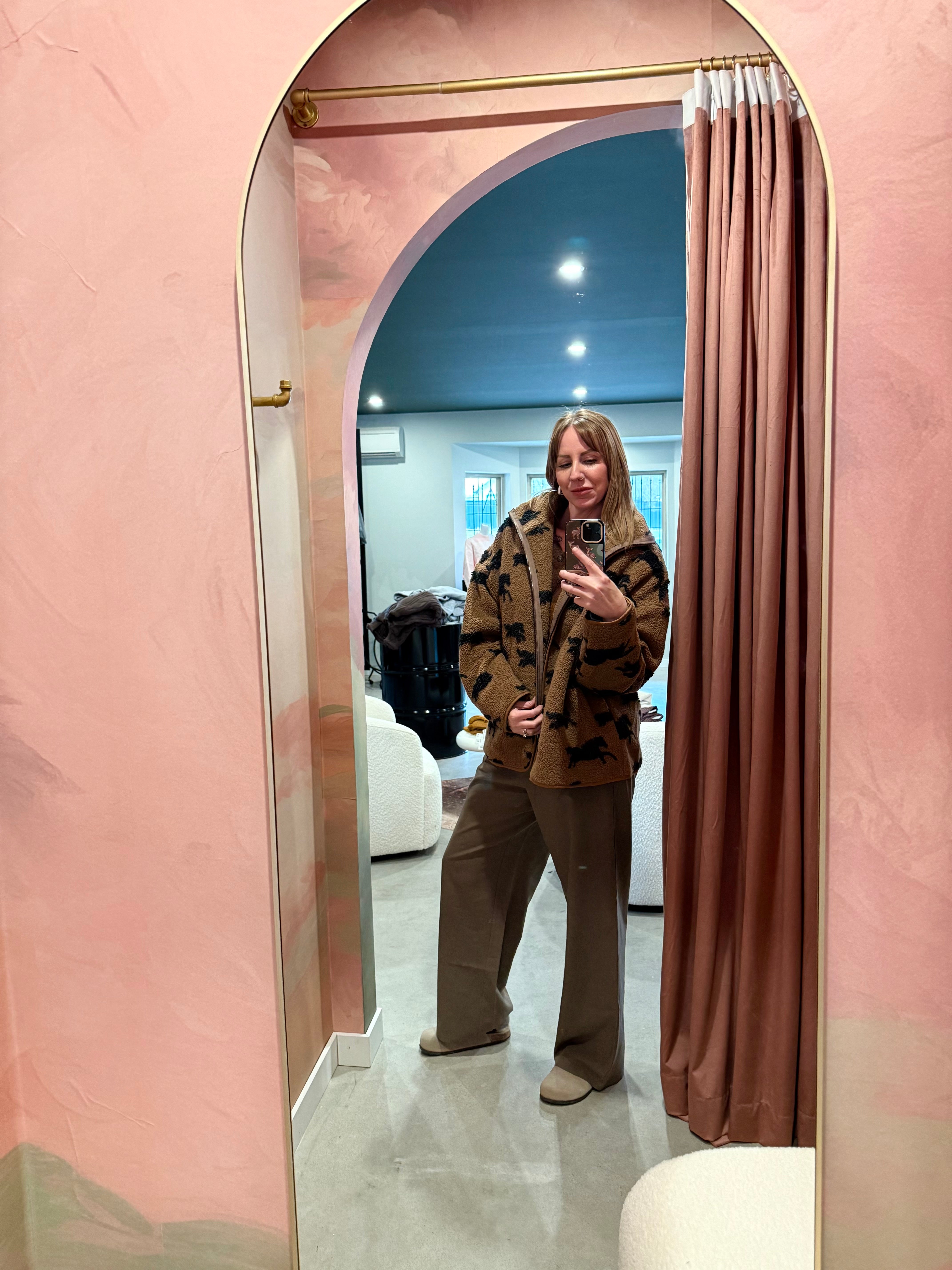 Wear this oversized full zip sherpa over a simple knit top and leggings for a cozy, casual equestrian-inspired look, or pair it with fitted trousers to contrast the relaxed fit silhouette.