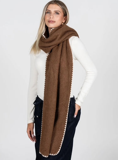 C'est Moi Wool Blend Contrast Stitch Scarf