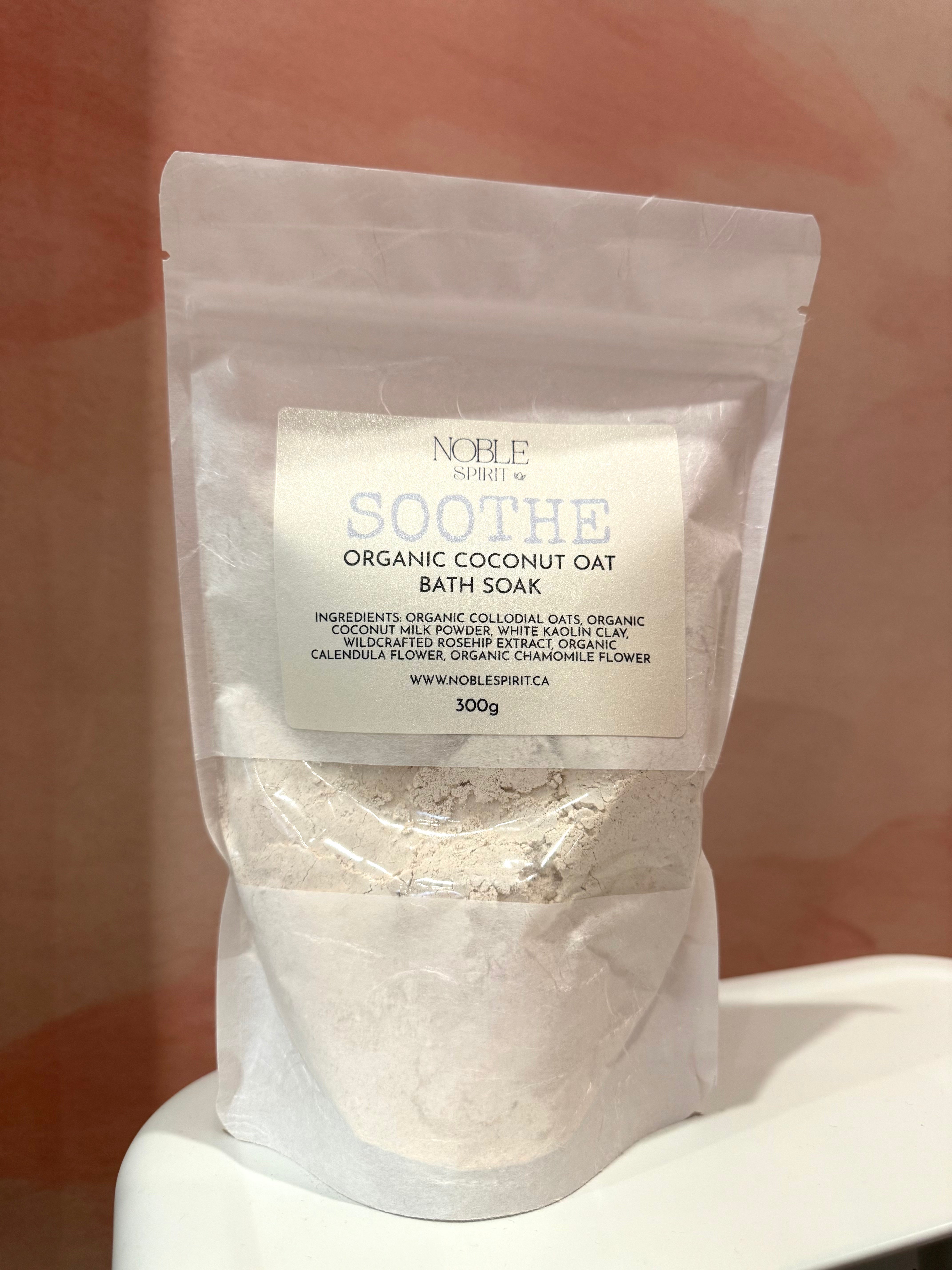 Pour, soak, exhale. This luxurious organic coconut oat bath melts irritation, softens skin, and leaves you feeling calm, clear, and quietly glowing. 100% Natural and Vegan.