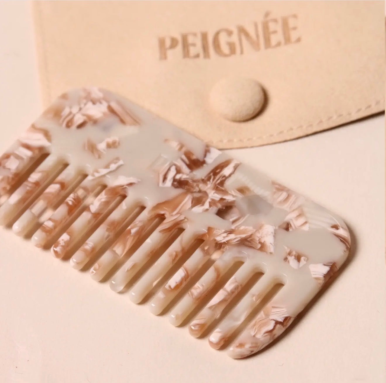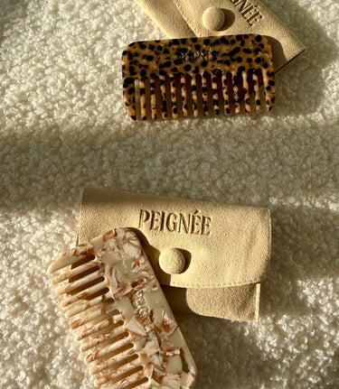 A chic, compact comb in bold leopard or Nougat—perfect for quick touch-ups on the go. Lightweight, durable, and designed to slip effortlessly into any bag. Imported from France. Sold individually in a protective case.