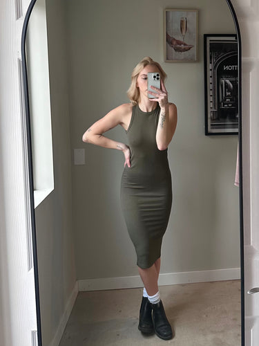 C'est Moi Bamboo Ribbed Tank Dress in Olive