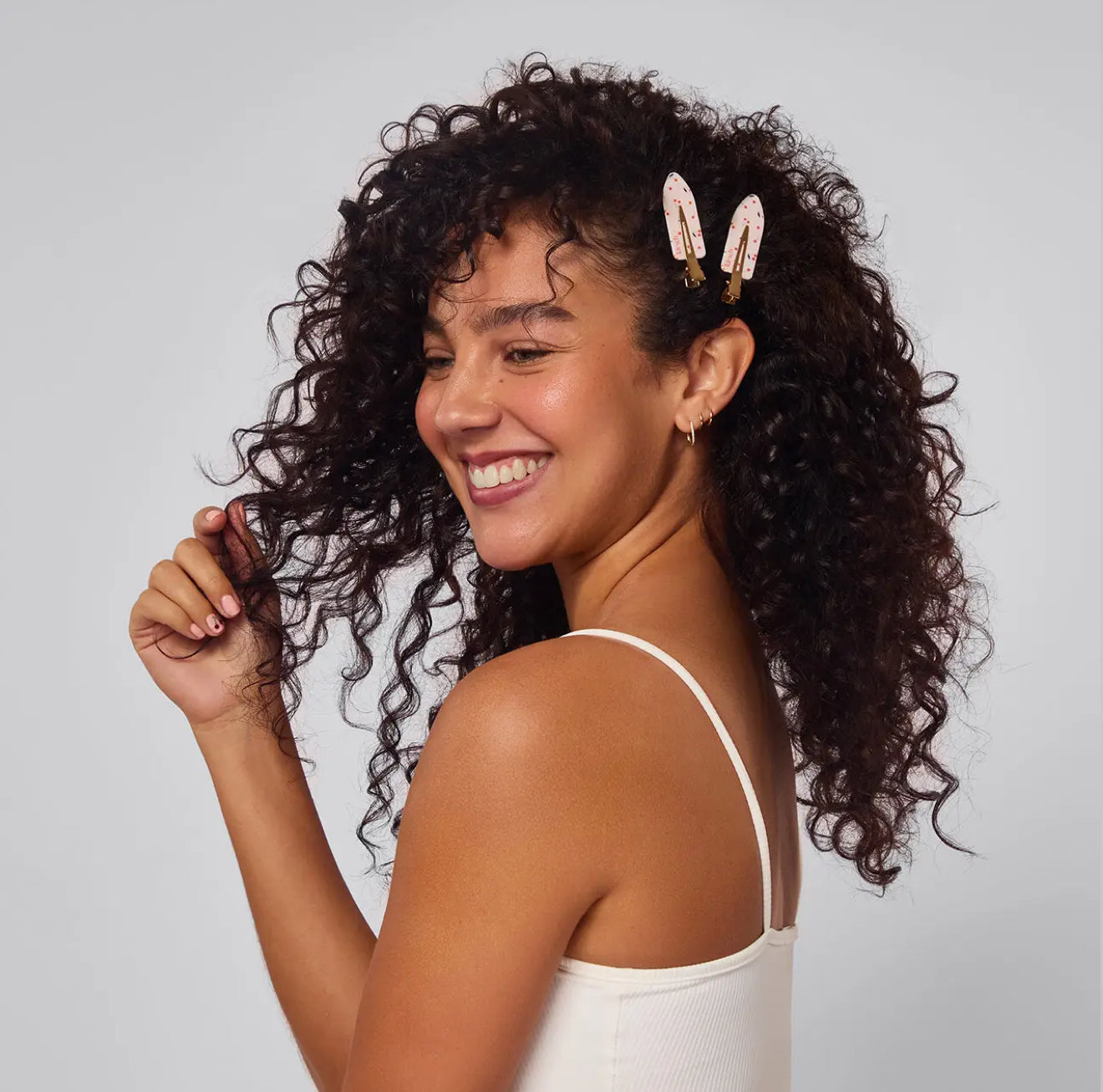 The Kitsch Recycled Plastic Creaseless Clips are the ultimate problem-solvers for flawless styling. This 4-piece set effortlessly holds hair back without leaving dents or causing any damage. Consciously crafted from recycled plastic, these no crease styling clips are a responsible choice. With a fun cherry print pattern, these clips stay comfortably in place without slipping or snagging, making these accessories essential for makeup application and everyday use.