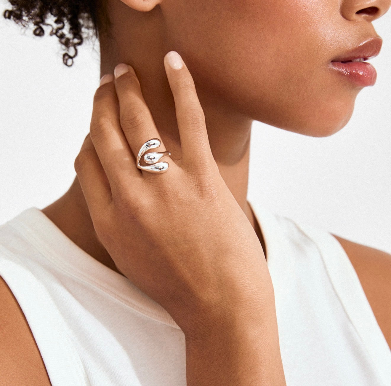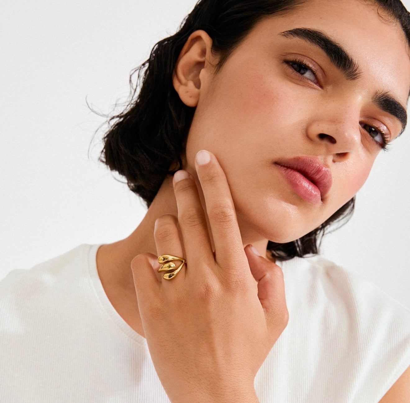 Molten metal meets minimalist grit — the Jennings Ring wraps sculptural droplets around your finger like liquid forged in fire and ice. Adjustable, waterproof, and sculpted from recycled-rich metal, it’s a statement nugget that plays well solo or stacked hard with your ring crew.