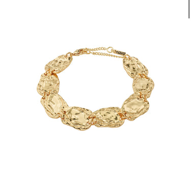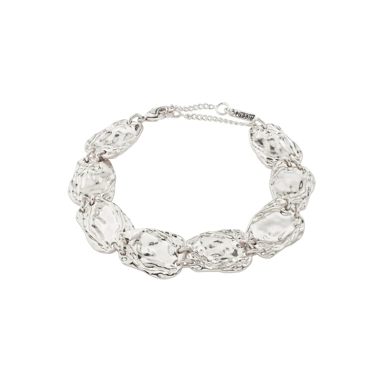 The Pilgrim Shift Wavy Coin Bracelet is a dynamic piece designed to perfectly fuse Boho elegance and classy style. This stylish link bracelet is composed of flat, wavy coin link elements, each featuring a raw textured surface. Available in both gold and silver plated finishes, this statement piece is consciously crafted from recycled material, upholding Pilgrim's ethical commitment. The secure lobster clasp bracelet ensures comfortable, confident wear for any occasion.