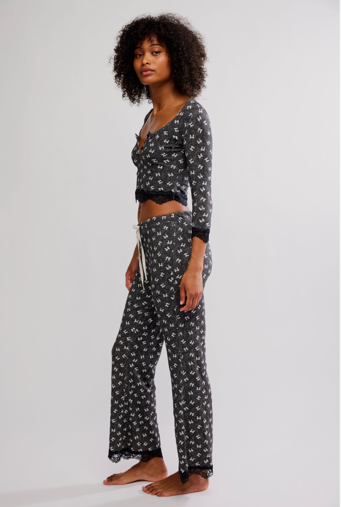 Steal a moment just for you in the enchanting Stolen Dance Sleep Set, an intimate masterpiece from the FP Intimately collection. This is more than just sleepwear; it’s an invitation to romance and relaxation. Crafted from luxurious jersey fabric, this set combines supreme comfort with delicate, feminine details like a beautiful allover print design and intricate lace trim. It’s the perfect blend of cozy and chic for unwinding in style.