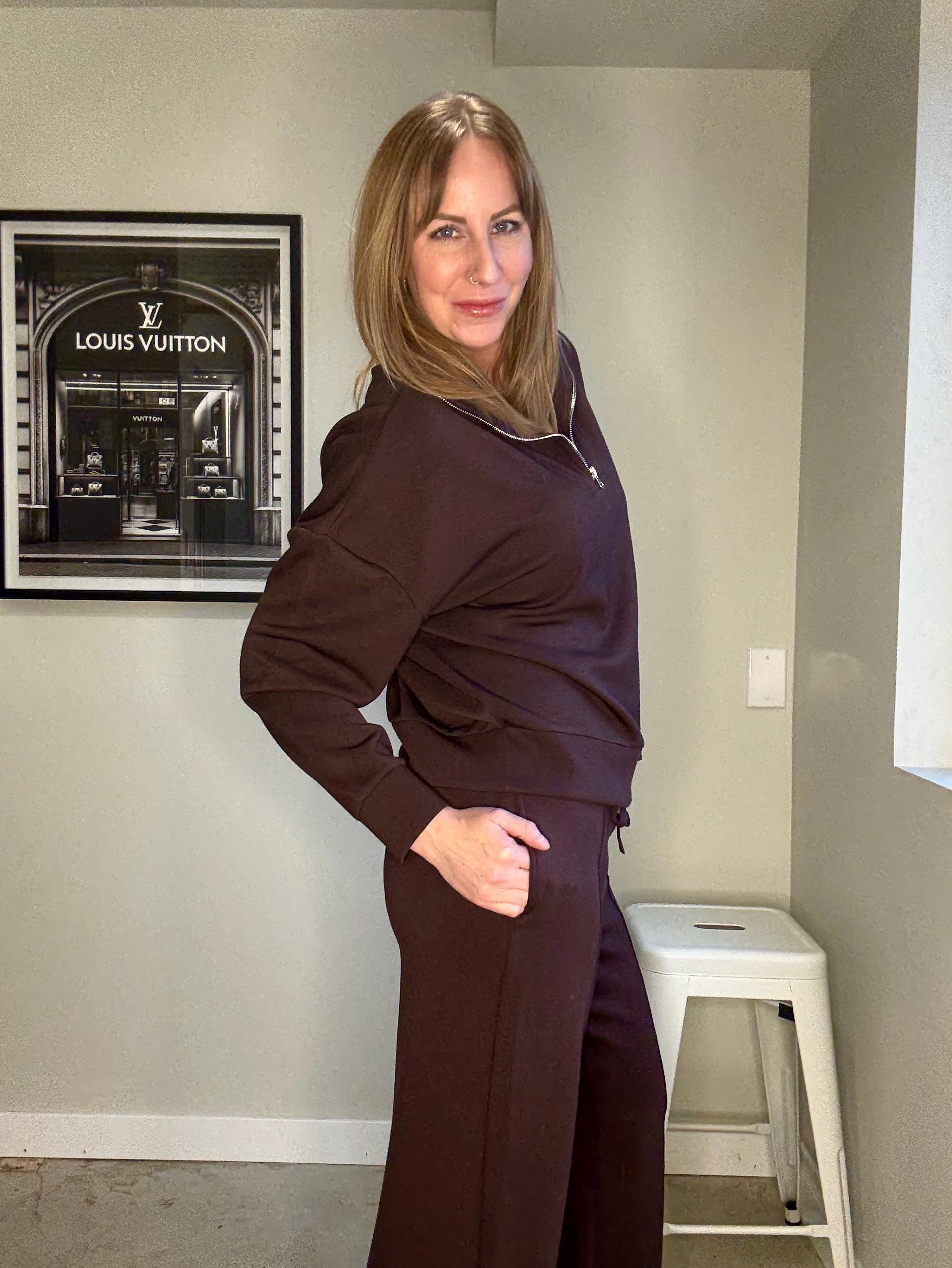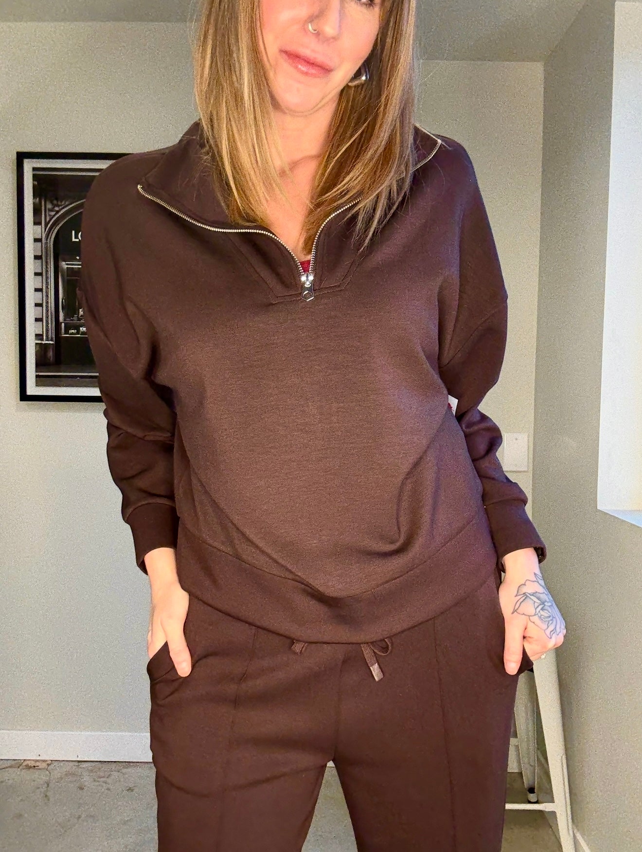 The RD Style Seanni Soft Knit Half Zip Pullover is designed for seriously elevated, all-day comfort. Crafted from a buttery soft, breathable blend, this long sleeve sweater has a luxurious handfeel and superb drape. The pullover features a modern 1/2 zip closure and collar neckline, adding a sophisticated touch to its relaxed silhouette. As a key RD Style matching set top, it completes the perfect cozy, coordinated look with the Prida Pants.