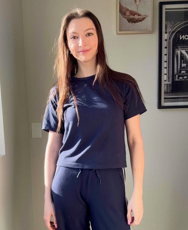 Crafted from buttery luxe modal and lightly lined fleece with a classic crewneck and slightly boxy fit. This top is made for effortless layering—perfectly paired with the Layover Track Pant for elevated, travel-ready comfort.