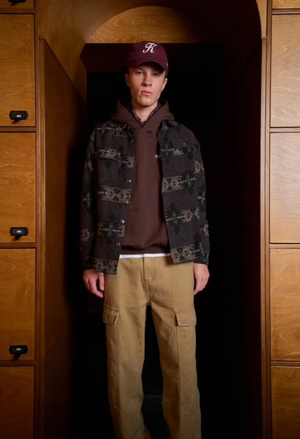 The Kuwalla Men's Navajo Overshirt is the ultimate statement piece for transitional layering, effortlessly merging the rugged utility of a jacket with the ease of a shirt (a "shacket"). Features an eye-catching all-over Navajo print that adds rich texture and bold character to your fall wardrobe. This piece is designed to be worn open over a tee or buttoned up as a durable, easy layering solution.