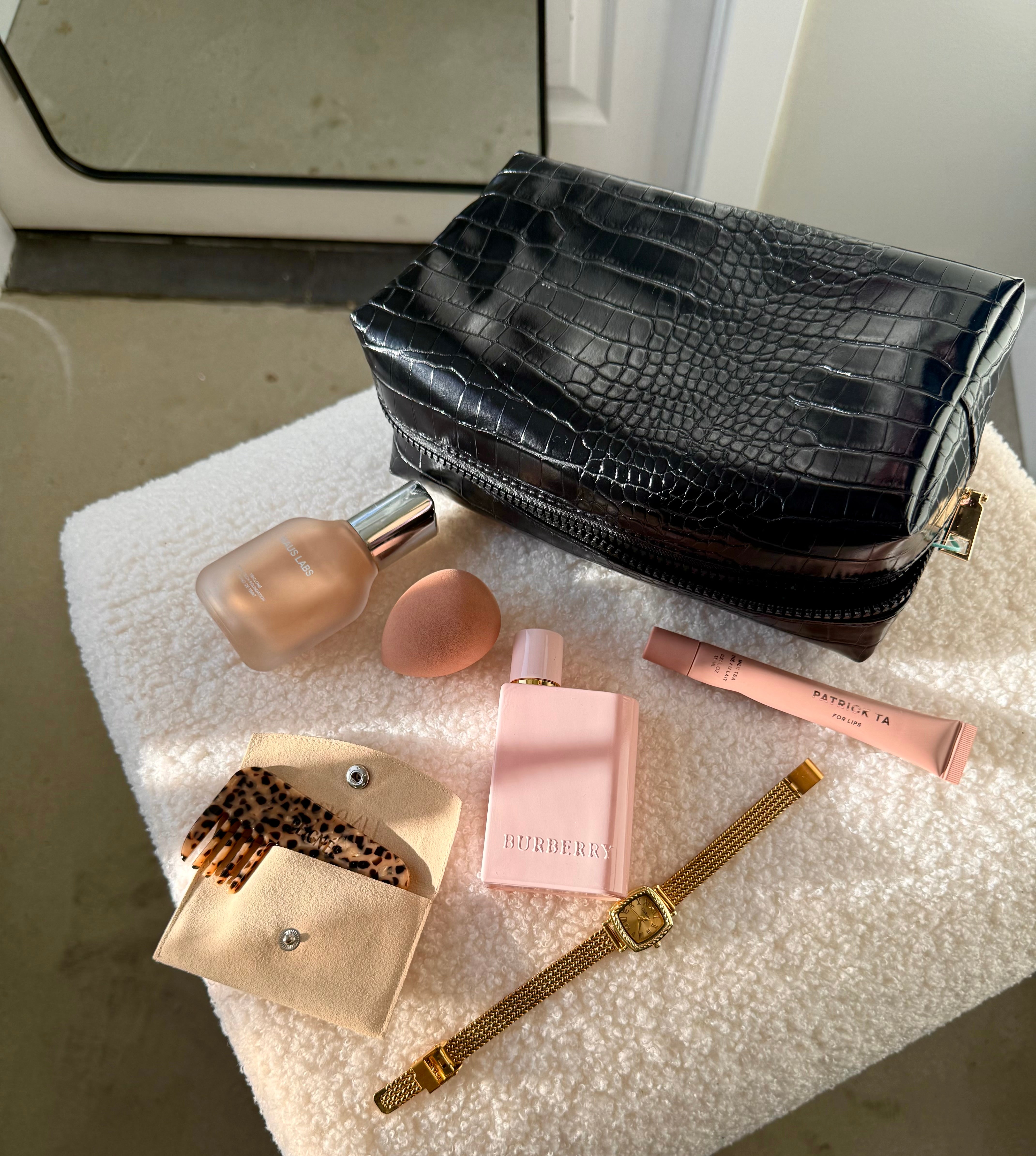 A sharp, modern pouch with a glossy croc finish—built to hold your essentials without the bulk. Vegan, structured, and effortlessly cool, it’s the grab-and-go piece that adds a touch of edge to your everyday. This one is a classic.