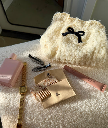 88 Fluffette Luxe Cosmetic Pouch – Cream/Black