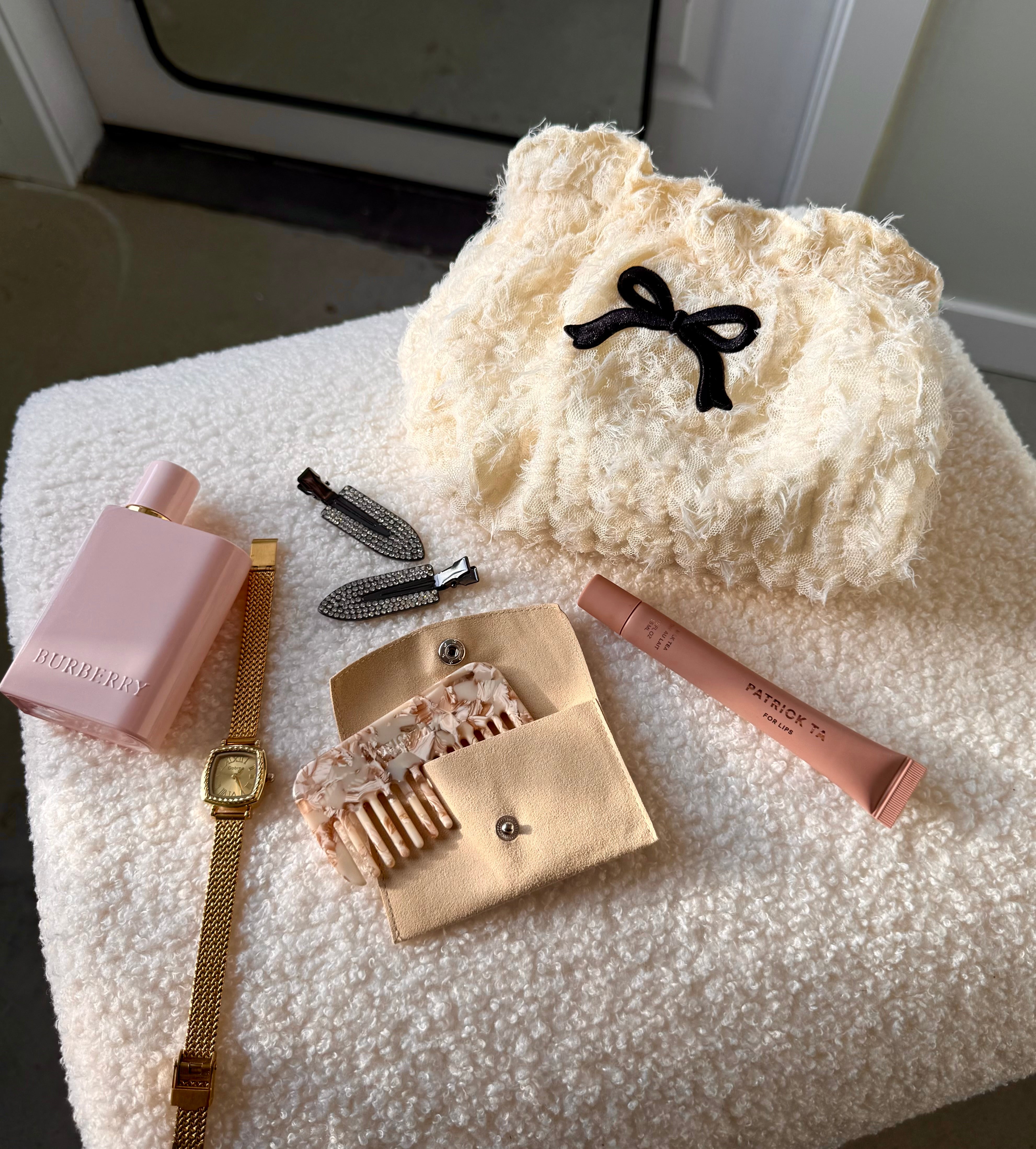 A soft, feminine pouch with a playful bow and a sleek two-tone finish. Vegan, roomy, and easy to carry, it keeps your go-to essentials organized while adding a touch of polished charm to your everyday. A Vault "Renaissance Style" favourite.