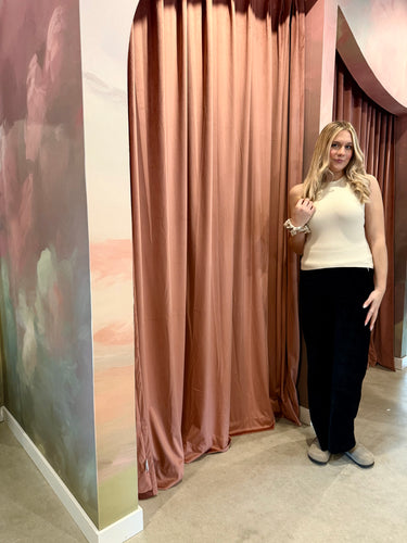 Wear this sleek high neck tank top as a chic standalone piece in warm weather, or as a smooth bulk-free layering piece under a blazer or shacket.