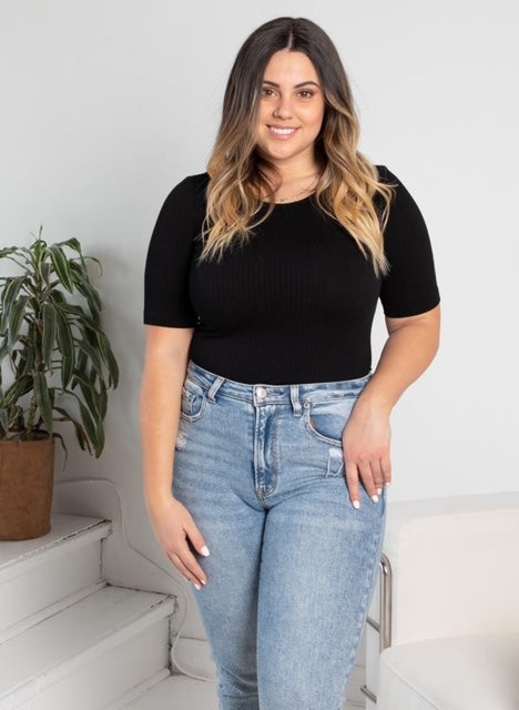 The C'est Moi Rib Short Sleeve Crew Neck is the essential foundation for any wardrobe. This fitted ribbed basic tee is crafted from a specialized, high-stretch blend of Modal, Nylon, Acrylic, and Spandex, ensuring superior softness and shape retention. The soft Modal ribbed texture top provides a smooth fit, making it the perfect layering top. With its classic crew neck and flattering silhouette, this tee is engineered for reliability and comfort.