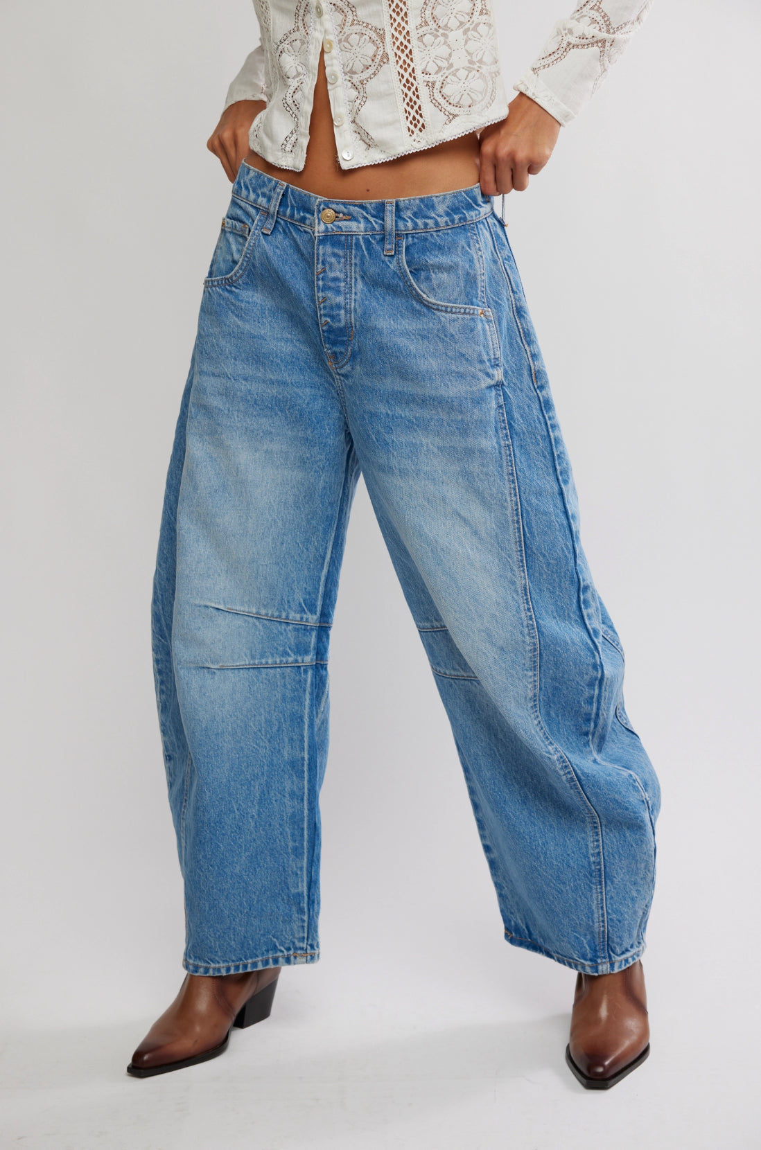 Pair these slouchy mid-rise barrel jeans with a fitted bodysuit or a tucked-in top to balance the wide-leg volume, and finish with a sharp ankle boot for a chic weekend look.