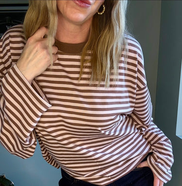 Lioness Bloom Long Sleeve, where cute meets comfort. The iconic bloom long sleeve features crew neckline, long sleeve, boxy fit, and stripes. This top is naturally oversized. Model in first four photos wearing a medium and model in photos 7 and 8 wearing extra small.